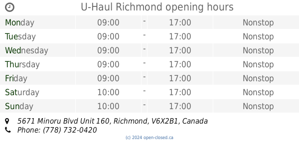 Please note that the information for U-Haul In Richmond, 5671 Minoru Blvd Unit 160 and all other Offices is for reference only.